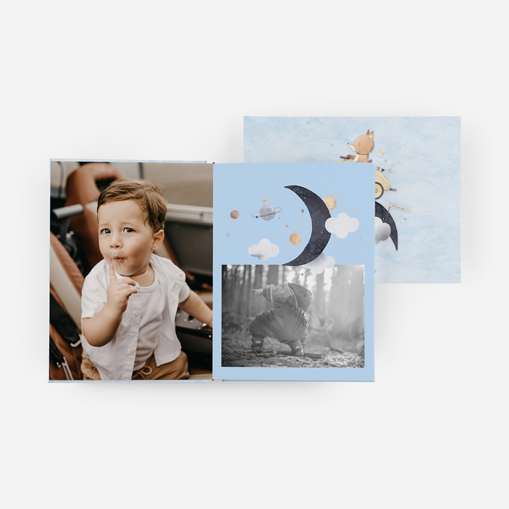 Um álbum que acompanha o crescimento do seu bebê. Com espaço para registrar aquelas pequenas grandes memórias, do bolo ao abraço. Feito para quem quer relembrar, com calma, como tudo começou.